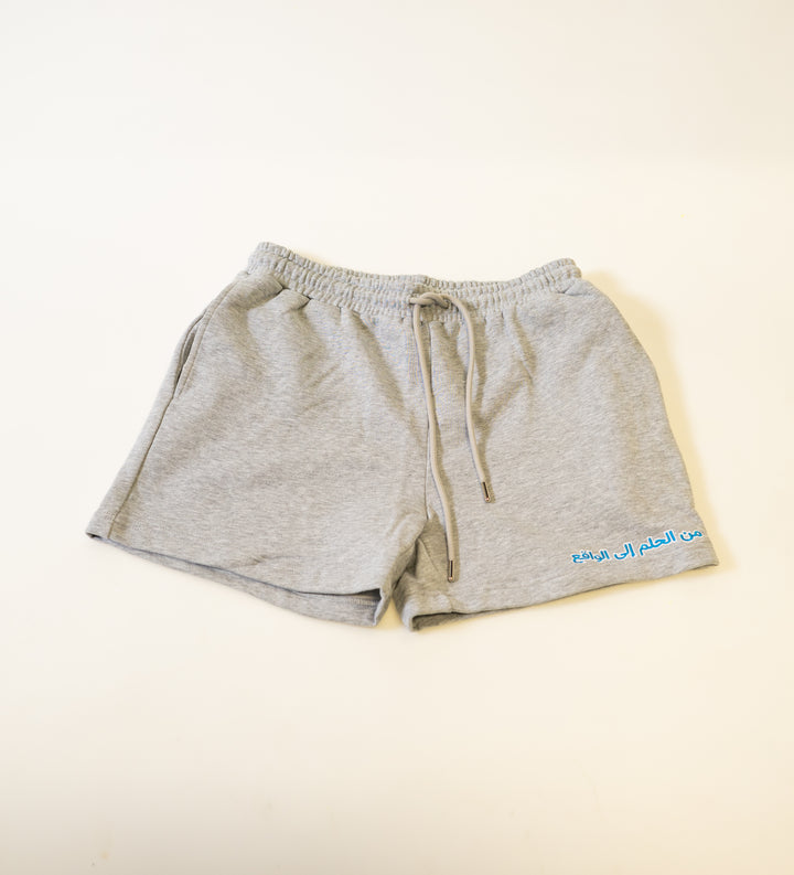 Elevate your everyday style with these grey shorts featuring a striking blue design that reads "Dreams to Reality." Crafted for comfort and inspiration, they blend minimal tones with a bold message—perfect for those who chase their vision with every step.