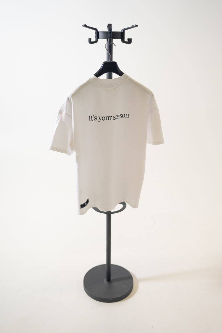 Stay cool and confident this summer in our crisp white t-shirt, designed for both comfort and style. Featuring the bold slogan "It's your Season" across the back and a subtle SwipeSeason label on the lower left, this tee is your go-to for making a statement under the sun.